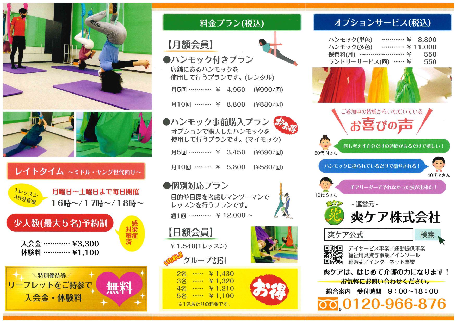 ヤング・ミドル世代向けハンモックフィットネスご案内のリーフレットです!