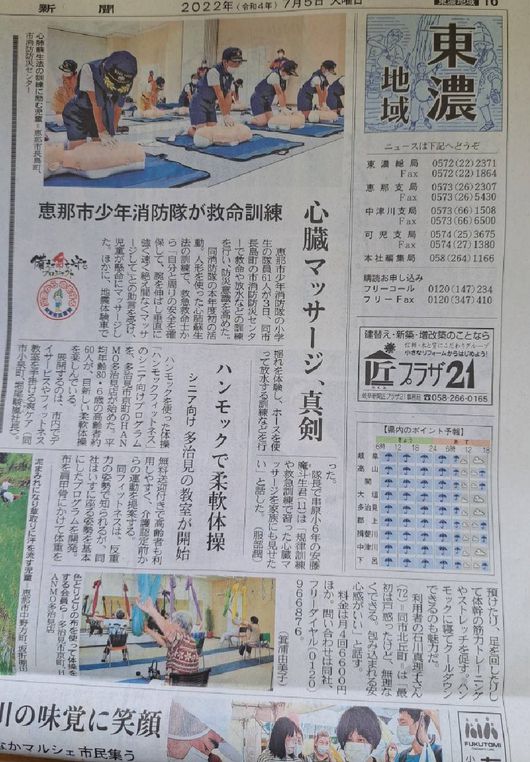 岐阜新聞さん東濃地域版に取り上げていただきました