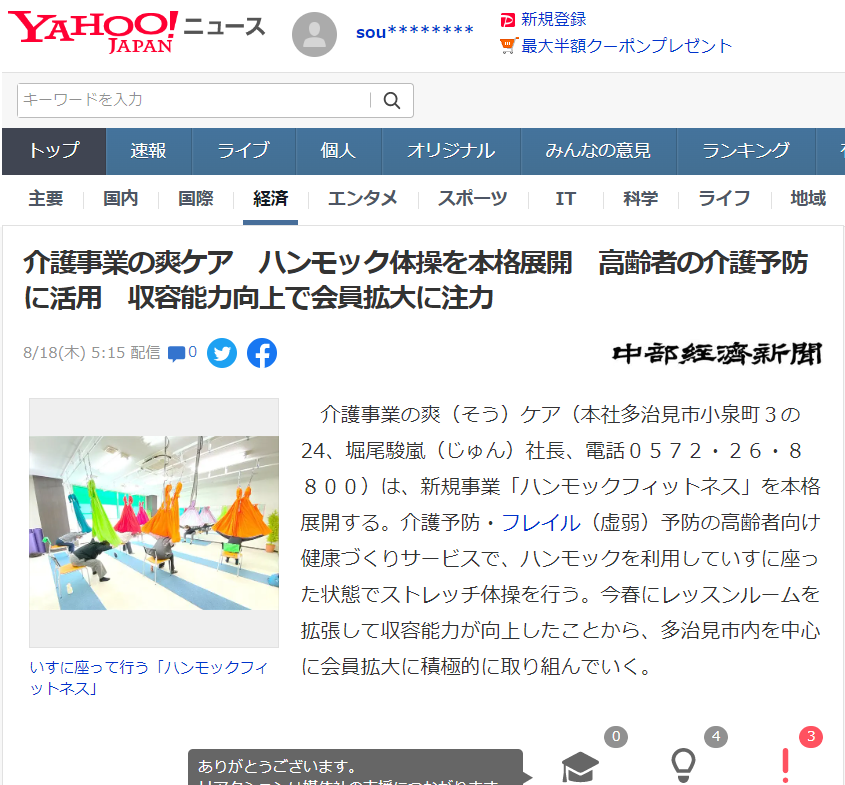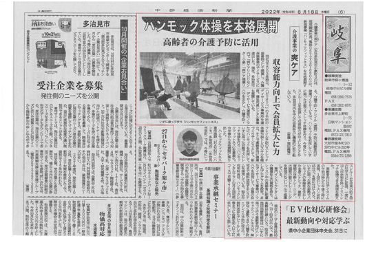 Yahooニュース・中部経済新聞・高齢者住宅新聞さんに取り上げていただきました